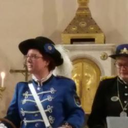 Vanmorgen tijdens ons jaarlijks patroonsfeest, is Marjon van Helden, door enkele dames van de marketentster stichting, als nieuwe marketenster geïnstalleerd.